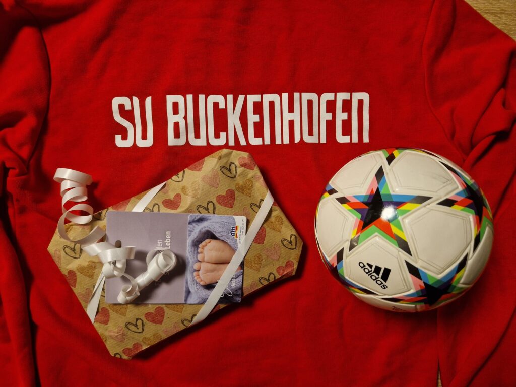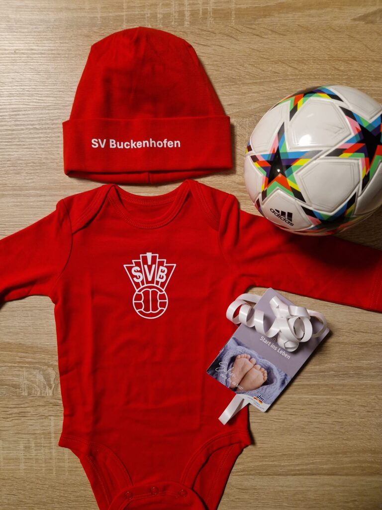 Auch unsere Staustufeneltern und -trainer der D-Jugend haben sich zusammengetan, um eine „kleine“ Erstausstattung im SVB-Look zu organisieren. Dazu noch ein Gutschein, um die notwendigen Utensilien zu besorgen.