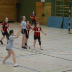 Im zweiten Spiel gegen Erlangen Niederlindach-Herzogenaurach (10:15) zeigten unsere Mädchen mehr Mut, liefen sich viel besser frei als  in einigen vergangenen Spielen zu beobachten war. Auch haben sie gelernt und gezeigt, sich aus Sperren zu befreien, was ihnen einige tolle Möglichkeiten vor dem gegnerischen Tor eröffnete. Von der Spielstärke her waren unsere Mädchen den Erlangerinnen ebenbürtig, und wenn sie das viele bei Norman und in den Spielen Gelernte zusammenbringen, wird es in nächsten Jahr spannende Begegnungen geben.