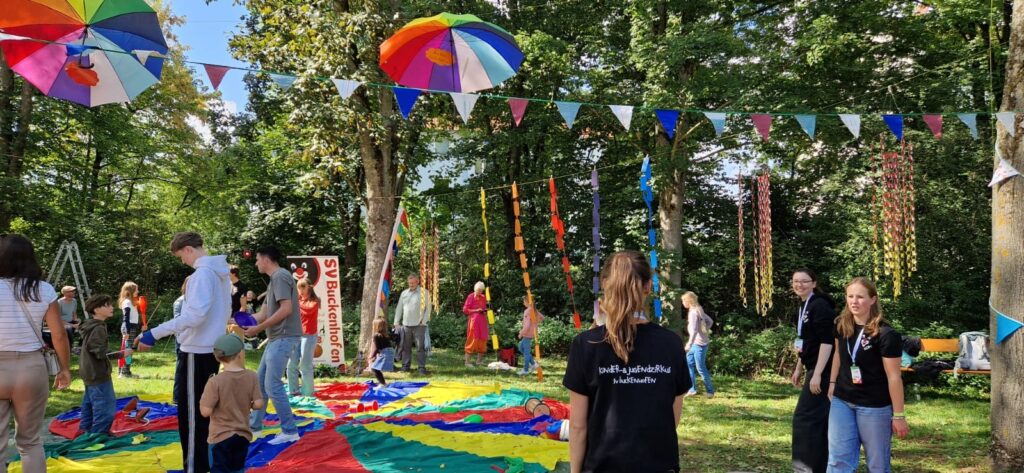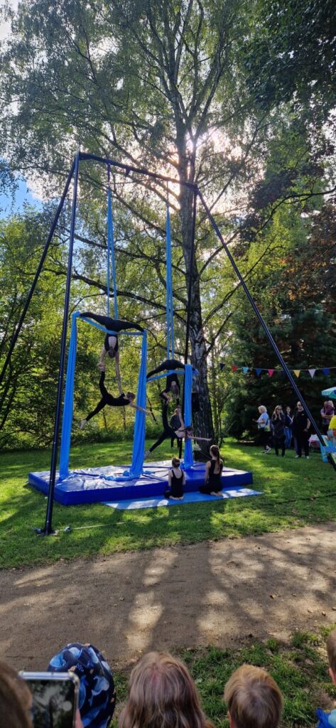 Am letzten Ferienwochenende fand im Forchheimer Sommerquartier beim Königsbad das ZirkArt statt und der Kinder- und Jugendzirkus war mit dabei. Ein ganzes Wochenende lang stemmten die jungen Erwachsenen der Gruppe „Talent&Los“ zusammen mit lena und Marion Knauer den Mitmachzirkus auf dem Gelände. Besucher:innen konnten sich beim Drahtseillaufen ausprobieren und in der Jonglage, RolaBola, Diabolo oder Poi coachen lassen. Zwischen den Auftritten der Profis durfte auch der KiZiBu und die SVB Luftartistik ihr Können auf der großen Bühne beweisen. Unter dem Motto „Stell dir vor…“ zeigte der KiZiBu Jonglage, Turnen, Kugellauf und Pyramidenbau und wurde mit tosendem Applaus belohnt. Auch die Luftartistinnen des SVB begeisterten das Publikum mit ihrer Darbietung an den Tüchern am extra aufgebauten Luftgestell mit Figuren und Fallern aus fast 7 Metern Höhe. Ein gelungenes Zirkuswochenende, das alle Kinder und Jugendliche begeistert schwärmen lässt!