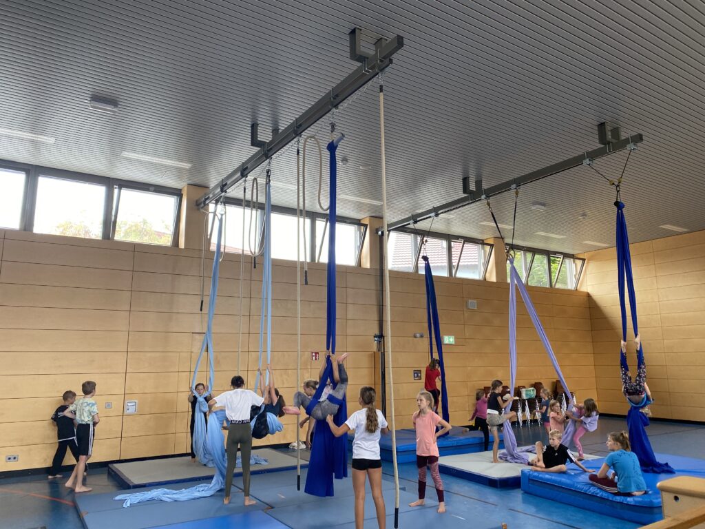 In den Sommerferien durften sich Kinder in allen Zirkusdisziplinen im Rahmen der SVB-Ferienkurse austesten: Ob Eltern-Kind-Zirkus, Diabolo- oder Laufkugeltraining bis zu den Luftdisziplinen Trapez und Vertikaltuch waren alle Kurse gut gefragt. Unter Leitung von Zirkustrainerin Lena Knauer hatten so vor allem viele Kinder und Jugendlichen der langen Warteliste für den Kinder- und Jugendzirkus die Chance, ein bisschen Zirkusluft zu schnuppern und sich im Zirkusport auszutesten.