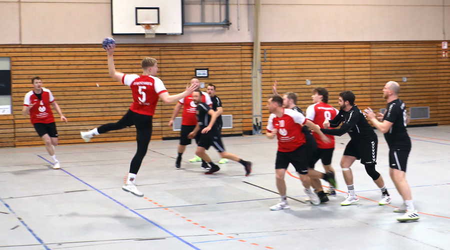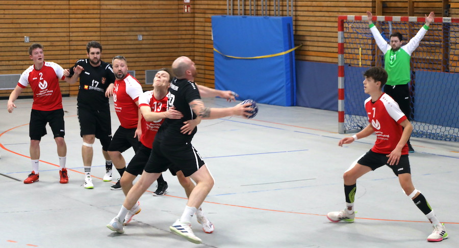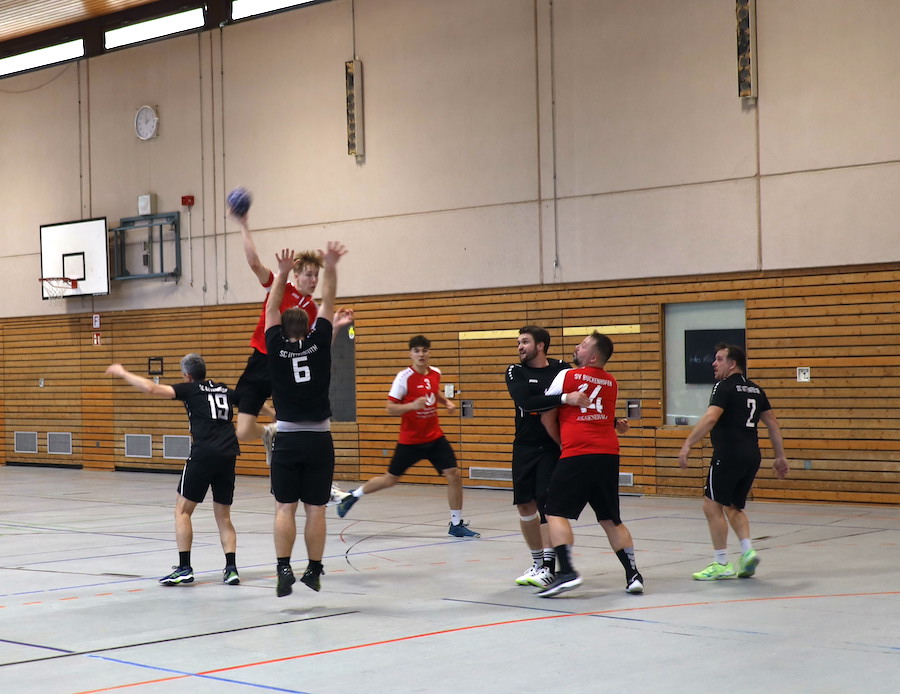 Nach dem Seitenwechsel entwickelte sich ein intensiver Schlagabtausch auf Augenhöhe. Beide Mannschaften lieferten sich ein temporeiches Spiel mit wechselnden Führungen. Der SV Buckenhofen zeigte sich dabei variabel im Angriff und kämpferisch in der Defensive. Besonders Julius Gumbmann übernahm Verantwortung und war mit neun Treffern erfolgreichster Torschütze der Gastgeber. Auch K. Winter und Sainz Derut zählten zu den treffsicheren Buckenhofenern und setzten wichtige Akzente in entscheidenden Phasen. Johannes Weber verdiente sich mit seiner Defensivarbeit ein besonderes Lob und Keeper Zündt entschärfte aussichtsreiche Versuche der Gäste.