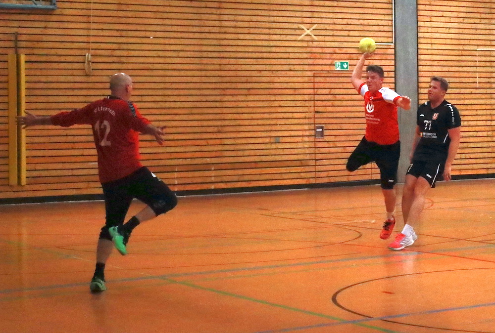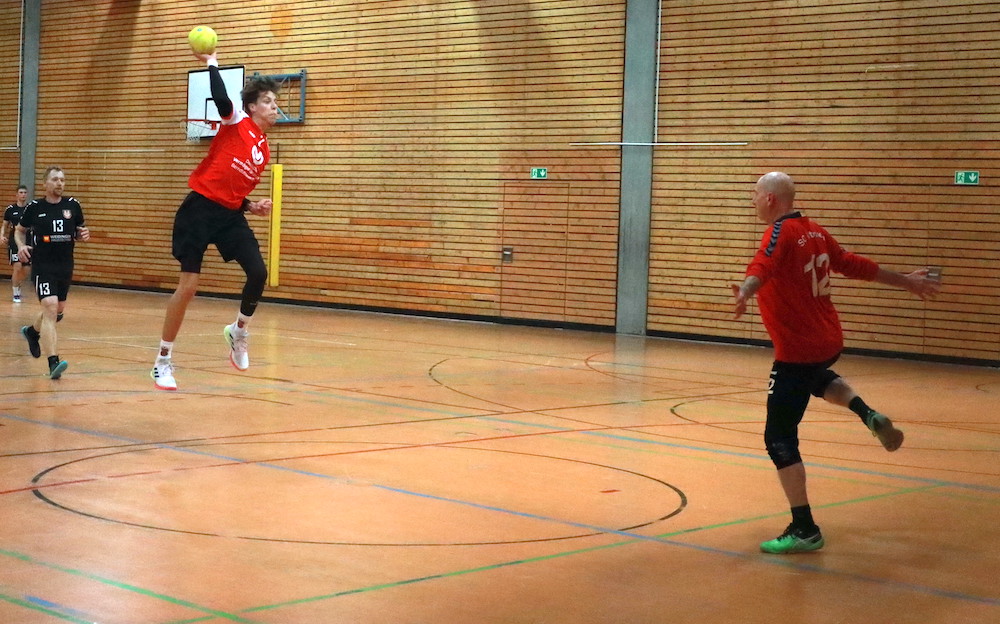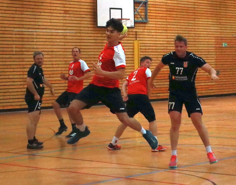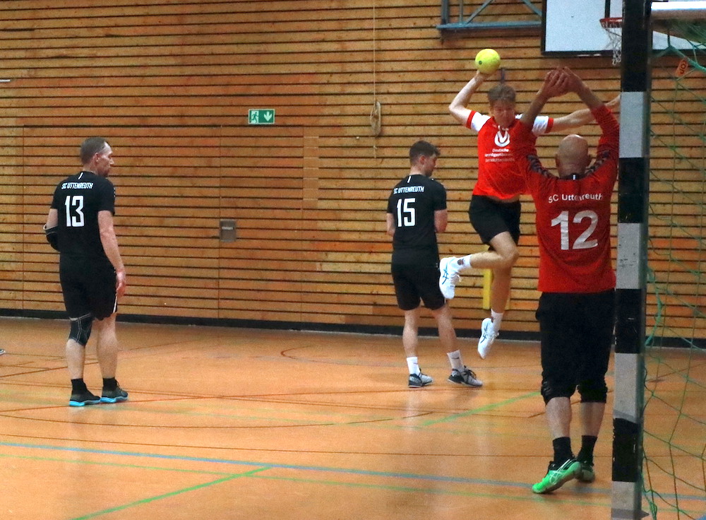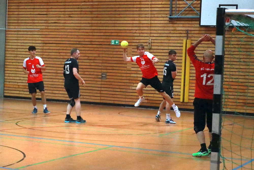 Im zweiten Durchgang erhöhte Team „Jung“ beim SVB. Hofmann klaute hinten den Ball, Wiek traf erst von Linksaußen, spielte später, auch von dort, Noppenberger am Kreis an und Weber und Fischer nutzten ihren Platz auf der rechten Seite. Die Frage nach dem Sieger der Partie war beantwortet, obwohl Kepper Möhrle in einer Unterzahlsituation und zwei Uttenreuther Treffern in Folge noch Bedenken hatte. Das Spiel plätscherte so dahin, die Gastgeber stiegen verständlicherweise auf die Bremse, die Rot-schwarzen gaben Gas. Handball-Neuling Jakisch konnte sich auch in seinem zweiten Einsatz wieder in die Torschützenliste eintragen, ehe Wiek zum Spielende hin noch ein paar Gegenstöße verwandelte.